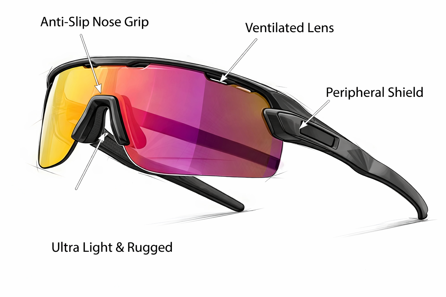 Unlike standard sunglasses, these are built for performance — offering enhanced stability, wider coverage, and a more secure fit during movement.